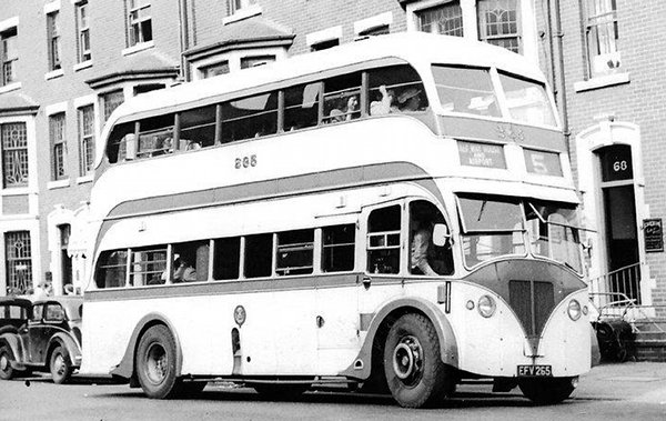 Registration EFV 265 fleet number 265 was a 1951 Leyland Titan PD2/5 with Burlingham FH29/23C bodywork