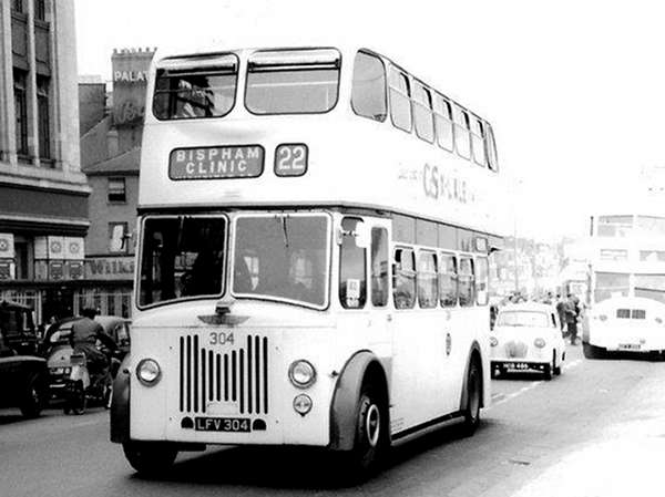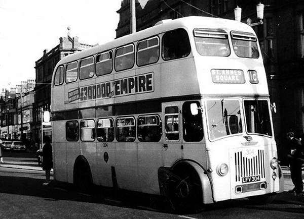 Registration LFV 304 fleet number 304 was a 1957 Leyland Titan PD2/21 with Burlingham FH35/28R bodywork.