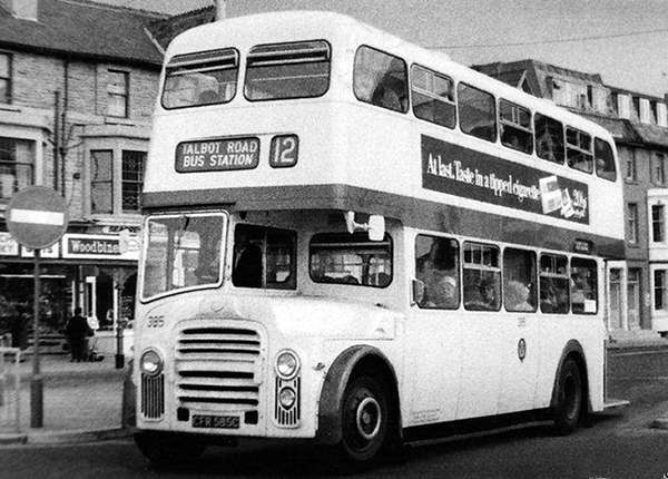 Registration CFR 585C fleet number 385 was a 1965 Leyland Titan PD3A/1 with Metro Cammell H41/30R bodywork.