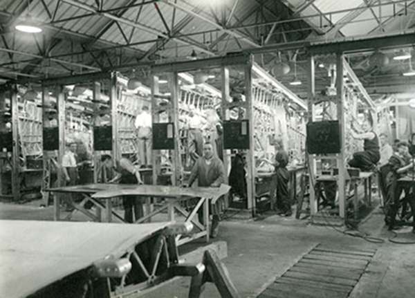 Re- the discussion about where the photos were taken, here’s a photo of the H&D Winchester Rd bus depot during its period as a requisitioned dispersal production location for Vickers Supermarine – making Spitfire wings. The roof trusses and panels seem to match well the pre-war images shown.