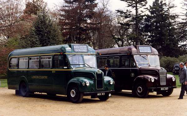 So here are two of the alleged at least 85 preserved examples of the 84-strong GS class. It seems amazing in these straitened times but during the 1990s Surrey County Council funded the operation of a summer Sunday Surrey Hills Leisure Bus network mainly using heritage vehicles, which at its peak in 1995 reached a Peak Vehicle Requirement of ten. Route 433 was a circular from Guildford on which the clockwise and anti-clockwise journeys were timed to pass at the National Trust property at Polesden Lacey where they connected with other routes on the network. GS13 from London & Country on the clockwise loop is in LT Country Area livery and former GS67 from Nostalgiabus on the anti-clockwise circuit is in the livery of Tillingbourne Valley Services, on 6th May 1996.
