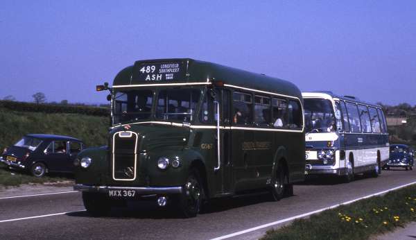 In the second picture, GS67 is on the 1971 HCVC Brighton Rally in May 1971, by which time it had re-acquired London Transport Country Bus livery, but the over enthusiastic application of cream paint around the radiator was never a feature of these buses in LT(CB&C) passenger service.