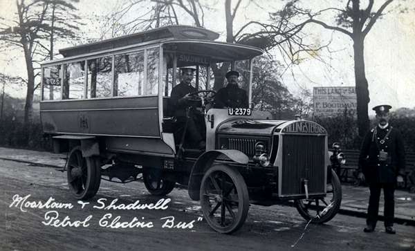 Can you tell me anything about the bus above? I know the number plate dates between 1904 and 1929, but I would like to narrow the date down if possible. I understand that these buses had a petrol engine which was used to drive a dynamo which, in turn, fed an electric motor driving the wheels. It was claimed that they were cheaper to use and easier for tram drivers to learn to operate. Their maximum permitted speed was 12 mph. Is this information correct as far as you know?