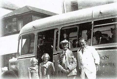 I also have this picture. On the right is Don driver Ernie Trigg. I believe, from photo evidence of other Don OBs that the coach is Duple-bodied DTP 149. Don had four Vista-bodied OBs, but sadly I do not have a picture to confirm the id of this one – I know for sure that it is not two of them, because they were 1948 deliveries – a picture of one confirms an external sliding door anyway. The other coach which is a possibility is DBK 461, but pictures I have show that it did not have the Don insignia visible here so that’s it – elimination!