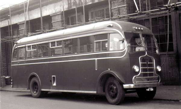 Well, this is interesting! Visually the radiator cover is almost identical to that used on the batch of Crossley SD42/Whitson observation coaches supplied to the USAF in the early 1950s, but the straight rail bodywork is highly reminiscent of the design used for Plaxton bus bodies between circa 1950 and the introduction of the Highway in 1957. There weren’t many of this type of body (by 1950 Plaxton’s service bus output had become almost negligible), but one well-known example was a Commer Avenger, ONT 960, which ran for Martlew in the Wellington(Shropshire)area and later passed to Carney of Rugeley. Of course, this is only conjecture, and may be no help whatsoever! I look forward to reading a definitive answer from somebody else.