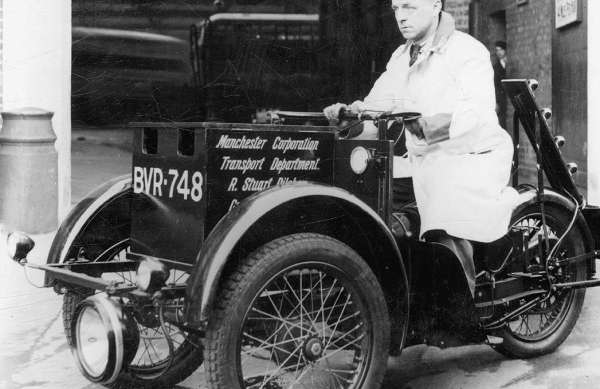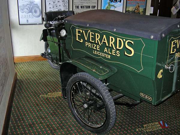 Motorised trikes had numerous uses, the Manchester one was possibly a standard commercial one. This isn’t exactly the same model but can be seen at the Nation Motorcycle Museum.